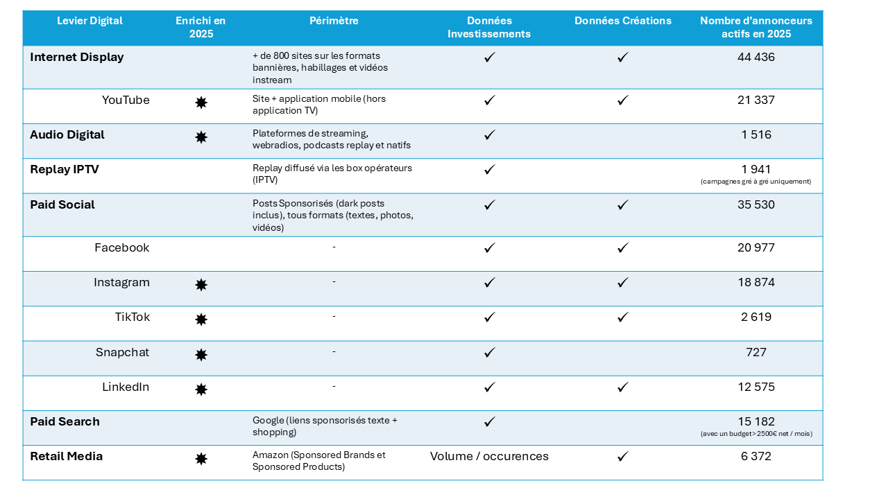 Les innovations introduites chaque année viennent enrichir cette lecture et accompagner les acteurs dans l'analyse de stratégies publicitaires de plus en plus omnicanales et complexes, tout en identifiant les tendances du marché.