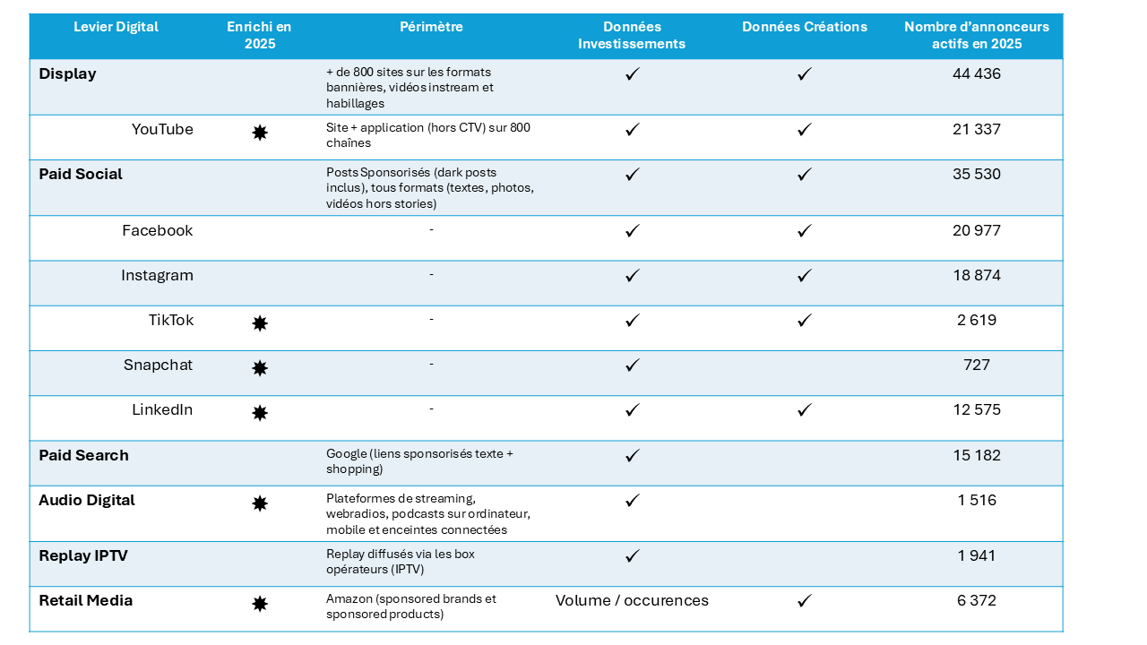 Les innovations introduites chaque année viennent enrichir cette lecture et accompagner les acteurs dans l'analyse de stratégies publicitaires de plus en plus omnicanales et complexes, tout en identifiant les tendances du marché.